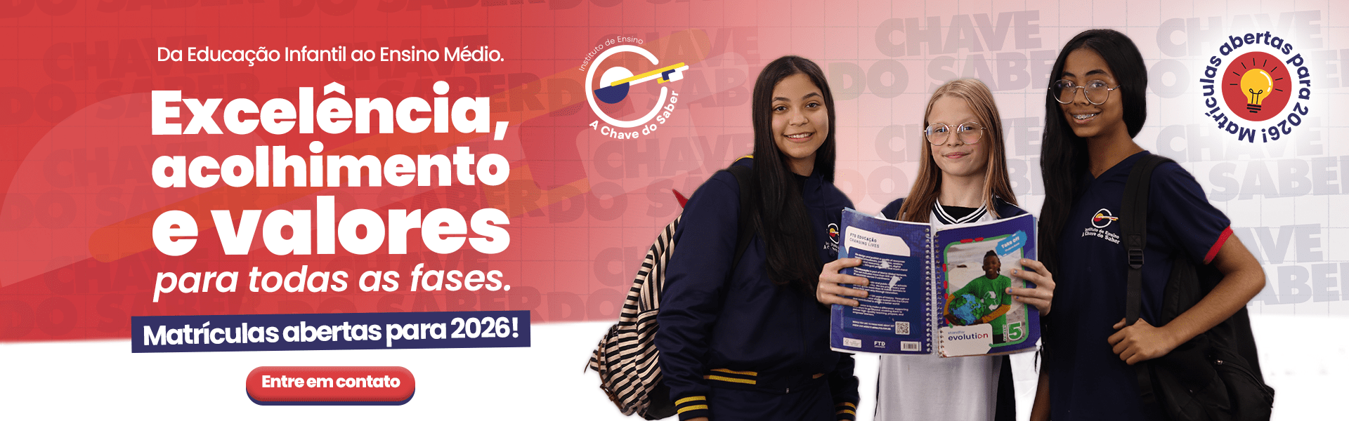 O Instituto de Ensino A Chave do Saber, com 40 anos de trajetória, busca formar e instrumentalizar o indivíduo para o nosso tempo, buscando desenvolver temas transversais como convívio social, inteligência emocional, ética, saúde, drogas, violência, consumo, meio ambiente e a atitude empreendedora.